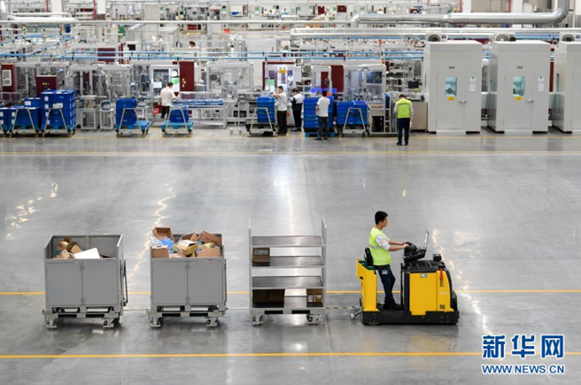 江苏太仓博泽汽车部件有限公司工作人员在生产车间运输产品(10月30日摄)。新华社记者 李博 摄