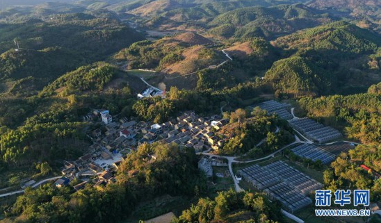 这是广西柳州市融安县大良镇古兰村古兰屯全景(12月3日无人机拍摄)。近年来,古兰屯大力发展现代休闲农业与乡村旅游,推动脱贫攻坚和乡村振兴工作。2018年,古兰屯实现了整体脱贫。 新华社记者 黄孝邦 摄