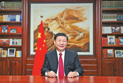新年前夕,国家主席习近平通过中央广播电视总台和互联网,发表二〇二〇年新年贺词。新华社记者 鞠 鹏摄