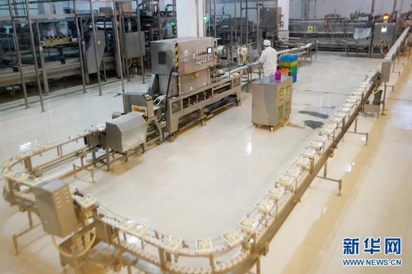 2月11日,在哈尔滨北大荒豆制品有限公司的生产车间,工人在进行豆腐生产。 作为黑龙江省生产规模最大的盒装豆腐生产企业,哈尔滨北大荒豆制品有限公司近日提前复工,保障豆制品市场供应,满足市民对家常“老豆腐”的需求。 新华社记者 王建威 摄
