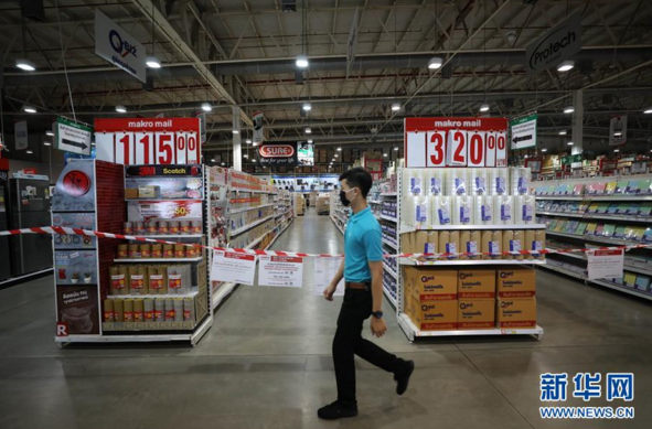 3月25日,在泰国曼谷,工作人员走过超市内的关闭区域。这家超市关闭了部分家电、家具区域,并提供线上售卖,以减少顾客感染风险。 泰国总理巴育24日宣布自26日起在全国范围内实施约一个月的紧急状态法,以应对新冠肺炎疫情。 新华社记者 张可任 摄