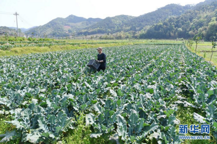 4月18日,村民在武夷山市兴田镇大渚村采摘蔬菜。 2018年,福建南平武夷山市兴田镇大渚村被确定为福建省“圆梦村”的试点村之一。近年来,该村依靠林地资源丰富、森林覆盖率高、水源清洁等生态资源优势,种植特色瓜果、绿色蔬菜和林下中草药,发展生态高效循环特色农业,并成立专业合作社和家庭农场,让农户入股,促进农业增效和农民增收。 新华社记者 林善传 摄