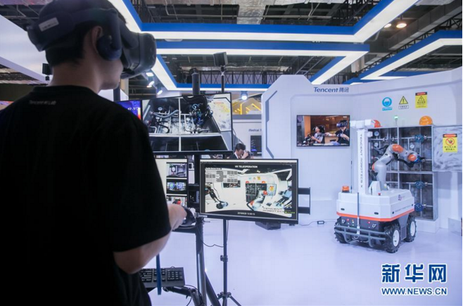 这是2019世界人工智能大会上一家公司展台展出的“工业巡检机器人”(2019年8月29日摄)。 新华社记者 丁汀 摄