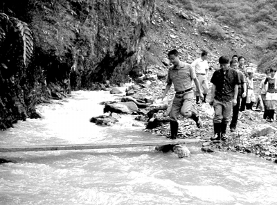 2010年8月30日,兰辉(左)在基层察看灾情。CFP