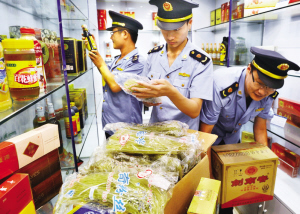 工商东丽分局始终把监管执法作为创新社会管理的主要内容,深入开展系列执法行动,努力营造安全的市场环境,维护公平公正的市场秩序。在民生重点关注领域继续毫不放松、严谨细致地抓好流通环节食品安全监管工作,开展地沟油、畜禽产品等各类专项执法活动23次,取缔市场内活禽屠宰加工3户,移交相关部门4户。在拍卖、汽车销售及维修、旅游、电子产品4类重点行业开展利用格式合同条款侵害消费者合法权益专项整治行动,查办合同违法案件11件,罚没款10300元。查处网络商品交易及有关服务违法行为案件9起,罚没款10.4万元。以人民群众反映强烈的家用电器、日用百货、食品、烟酒等行业为重点,集中开展打击“傍名牌”专项执法行动,查扣侵权白酒240瓶,假冒伪劣油脂2160公斤,假冒苏打水14424瓶。查办各类经济违法案件360件,比去年同期增长38.2%;罚没款330万元,比去年同期增长40.2%。