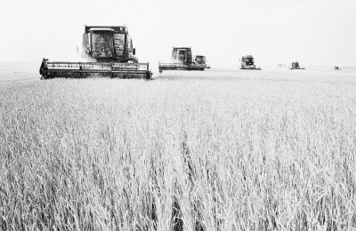 黑龙江垦区友谊农场大机械在收割小麦。资料图片