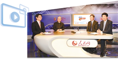 两会前夕,中国法学会党组书记、常务副会长陈冀平(左二)做客“两会e客厅”,与全国政协委员、中华全国律师协会会长王俊峰(右二),中国政法大学教授卞建林(右一)共话全面推进依法治国,访谈由本报记者张洋(左一)主持。