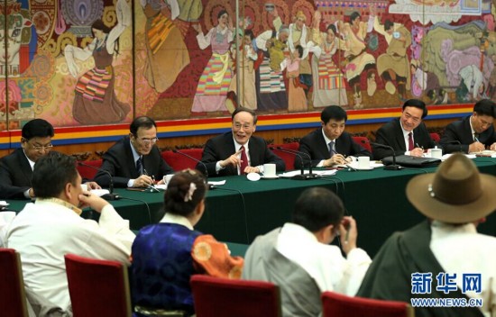 3月12日,中共中央政治局常委、中央纪委书记王岐山参加十二届全国人大三次会议西藏代表团的审议。 新华社记者 马占成 摄