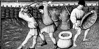 11世纪的古英语作家埃尔弗里克的对话作品中,农夫这样诉说:“我劳动非常辛苦。我黎明就得外出,把牛赶到田地里,给它们套上犁。……在给牛套上犁,固定好犁头和犁刀之后,每天我必须犁耕一英亩或更多土地。”农夫还说,“我有个男孩,他帮着用木棒赶牛。他的嗓子因为寒冷和吆喝而沙哑”。这段文字,不难使读者去想象中世纪劳动的具体场景。14世纪英国兰格伦的《农夫皮尔斯》是针砭时弊的劝谕长诗,诗中穿插着对劳动的细致描写。例如,皮尔斯“带上他的犁队去翻耕土地”,“我开沟、挖地,按他的吩咐干活,时而播种耘田,时而收割打晒”,“凡谁能帮他犁地,松土或播种”,“人人都将纺线施肥,埋头苦干”,“既为他种地,又为他饲养牲畜”,“用来套车拉粪到田里施肥”,……兰格伦的文字,呈现的劳动场景更为全面,劳动内容则包括一年四季的耕田、播种、耙地、施肥、收割、打场等环节。