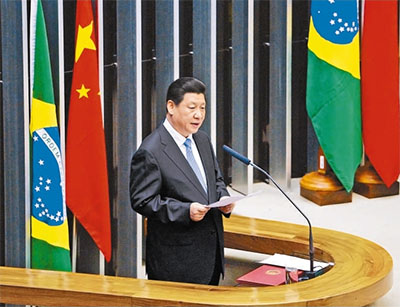 当地时间7月16日,国家主席习近平在巴西国会发表《弘扬传统友好 共谱合作新篇》的演讲。