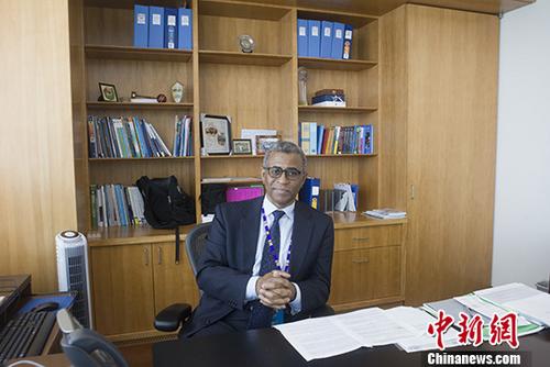 近日,联合国经济发展助理秘书长兼首席经济学家埃利奥特·哈里斯在接受专访时说:“中国的改革开放是过去四十年中我们所见到的独一无二的、最令人印象深刻的发展历程。”图为哈里斯在位于联合国总部的办公室内接受中新社记者专访。 中新社记者 马德林 摄