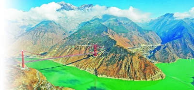 雅康高速公路泸定大渡河兴康特大桥全长1411米,被誉为“川藏第一桥”。新华社发