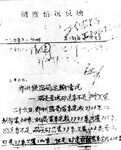 ▲图为国家计委关于反映郑州铁路局存在严重问题的报告。1975年2月,中央召开解决铁路问题的各省、市、自治区党委主管工业的书记会议。邓小平指出,解决铁路问题的办法是要加强集中统一。必要的规章制度一定要恢复和健全。会议通过了《关于加强铁路工作的决定》,作为中共中央文件下发。这标志着1975年各条战线整顿工作的开始。