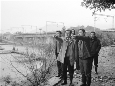 广西灵川县委书记袁国华(前左)在基层调研工作