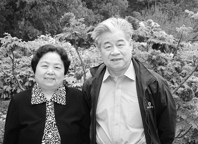 图为2006年,张海鹏与夫人在北京景山公园赏牡丹。 (资料图片)