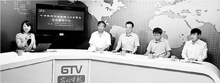 访谈现场,从左到右依次为王斯敏、柯银斌、丁元竹、张洪忠、李刚。