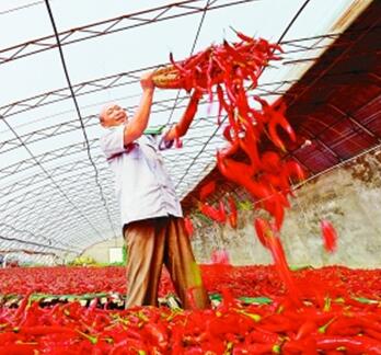 河北省邯郸市鸡泽县魏青村村民在晾晒辣椒。新华社发