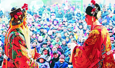 楚剧的传承重任落在了青年一代的身上。图为武汉楚剧院青年团演员下乡演出。光明图片/视觉中国