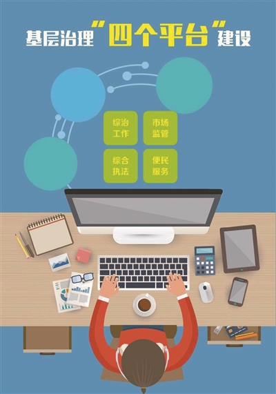 三、“二个统一”保障综合执法。统一协调指挥,以“重心下移、属地为主”为原则,形成人员和工作内容有机统一,在保障综合执法过程中,力量协调和任务安排由街道统一调配指挥,确保人员配备到位、工作落实到位。统一考核监督,“四个平台”工作专项考核实行“月度考核、季度推优、年底总评”,作为检验基层干部服务成效的有效手段。