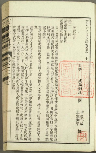 金圣叹《〈景阳冈武松打虎〉评点》,《第五才子书水浒传》(日本早稻田大学图书馆藏)