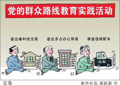 漫画:交卷 有关部门近日通报党的群众路线教育实践活动进展情况中,涉及领导干部配备公车、多占办公用房和福利性住房的内容引人关注。 新华社发 蒋跃新作