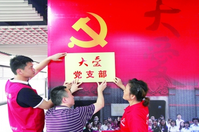 7月1日上午,上海,地铁6号线巨峰路站党建联建党员志愿者们的“大爱党支部”挂牌。CFP