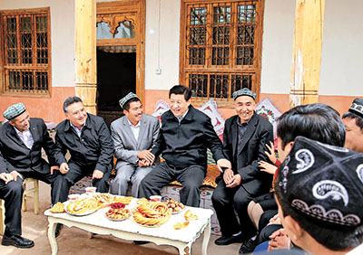 4月27日至30日,中共中央总书记、国家主席、中央军委主席习近平来到新疆考察,对做好新疆维护社会稳定、推进跨越式发展、保障和改善民生、促进民族团结、加强党的建设等工作进行调研指导。