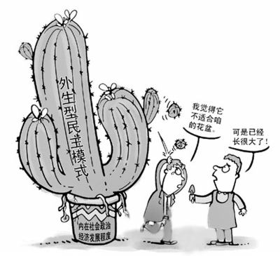 应该指出,在第三次民主化浪潮中,不少后发国家不顾自身国情与文化传统,简单照搬西方现代民主形态,尽管可能取得一时的经济发展,但不久就陷入内乱和分裂的泥淖不能自拔,并在“现代民主烦恼”中苦苦挣扎。近年来,西亚、北非地区的国家在西方强权干预与制造的“颜色革命”中开始西方式的民主化进程,但都付出了惨重的代价。例如,菲律宾、泰国、乌克兰、吉尔吉斯斯坦等国充斥着失望、腐败与混乱;海地、伊拉克、阿富汗、刚果民主共和国等国则充满绝望。