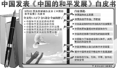 2011年9月6日,中国发表了《中国的和平发展》白皮书。新华社发