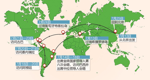 图为习近平主席拉美之行示意图。制图:张芳曼