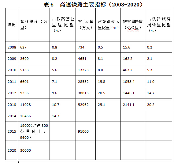 继续加强重大基础设施建设。高铁营业里程达到3万公里(见表6)、覆盖80%以上的大城市;新建改建高速公路通车里程约3万公里,高速公路通车总里程达到15万公里,建设15.2万公里通建制村沥青(水泥)路;建设沿海、沿江、沿边、沿线(“一带一路”)“四沿”大通道;建设京津冀、长三角、珠三角世界级机场群;推进上海、天津、大连、厦门等国际航运中心建设;新增城市轨道交通运营里程约3000公里;农网供电可靠率达到99.8%;实施“宽带中国”重大工程,98%的行政村实现光纤通达,实现城乡宽带网络全覆盖,覆盖90%以上的贫困村;农村自来水普及率达到80%。中国正在加速基础设施现代化,在世界上投资规模最大,技术设备工程最先进,建成运营长度最长,覆盖国土面积最广,服务人口数量最多。