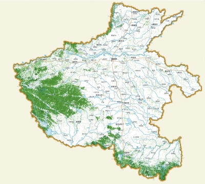 河南省森林资源分布图(数据来源于第八次全国森林清查资料)