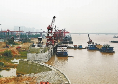 长沙港霞凝港区三期工程,不少货船在9号、11号泊位停靠卸货。霞凝港区三期工程分为南、北片区,共六个泊位,目前北片区9号、11号泊位已经建成,10号泊位正在加紧施工。该工程建成后,长沙港年吞吐量将达到1000万吨。实现集进出口集装箱、大宗件杂货、滚装、散货装卸运输于一体及“水铁”无缝对接的现代化港口,形成立足长沙、辐射全国的铁路、公路、水运立体交通运输网络体系。湖南日报记者 赵持摄