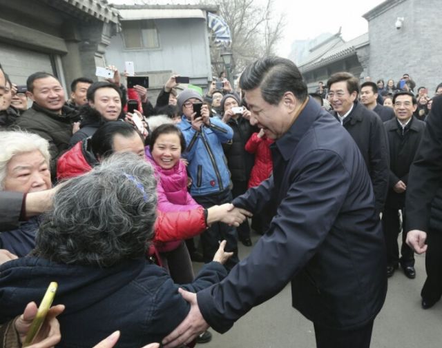 2014年2月26日,中共中央总书记、国家主席、中央军委主席习近平在北京市考察。这是习近平在东城区考察玉河历史文化风貌保护项目时与群众热情握手。