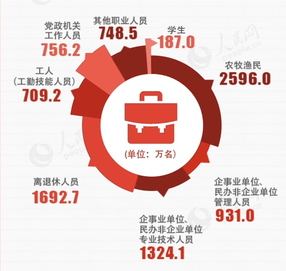 2016年党员职业成分与人数构成图(图/人民网)