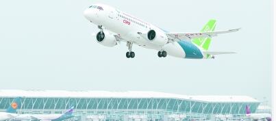 我国自主研制的C919大型客机在上海浦东国际机场起飞。新华社发