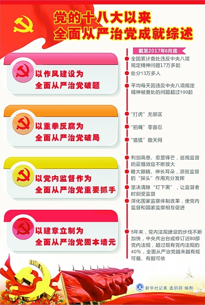 反腐惩恶成效显著。以无禁区、全覆盖、零容忍的坚定态度清除寄生在党的健康肌体中的腐败毒瘤,“打虎”“拍蝇”“猎狐”,反腐败斗争压倒性态势已形成并巩固发展,不敢腐的目标初步实现。坚持惩治和预防并举,制度治党和思想建党相结合,改革和完善党的各项制度,编密扎牢不能腐的笼子;坚持理想信念教育,不断构筑不想腐的堤坝。监督巡视工作不断深入推进,巡视监督制度威力日渐彰显,定期巡视、多轮巡视、专项巡视等常态化党内制度安排促使党内风气迅速扭转。
