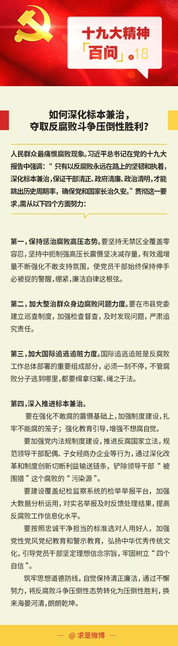 【十九大精神百问】如何深化标本兼治,夺取反腐败斗争压倒性胜利?