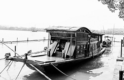 浙江嘉兴南湖,“红船”停泊在岸边。