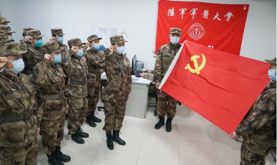 在今年的抗疫斗争中,党的领导核心作用得到充分彰显。面对突如其来的新冠肺炎疫情,以习近平同志为核心的党中央运筹帷幄、掌舵领航,从中央到地方,从城市到农村,从政府到企业,从行业到区域,一声令下,万众一心,迅速集聚起强大力量,全国疫情防控阻击战取得重大战略成果,展现出令世人称赞的中国力量、中国精神、中国效率。党的领导和我国社会主义制度发挥了无可比拟的作用。这是新时代中国共产党领导作用的有力注解和生动诠释。图为2020年2月1日,在武汉金银潭医院,陆军军医大学医疗队队员在党旗前宣誓。新华社记者程敏/摄