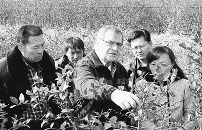 2013年11月26日,荷兰农业专家林德罗夫在山东省日照市东港区陈疃镇西尚沟村为村民讲解蓝莓种植技术。人民视觉
