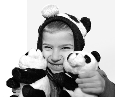 2014年2月23日,一名比利时小朋友手拿熊猫玩具,等待中国大熊猫“星徽”和“好好”抵达布鲁塞尔。新华社发