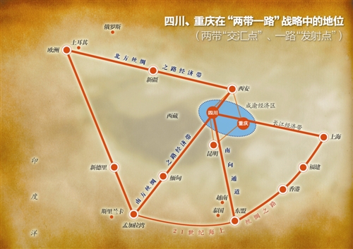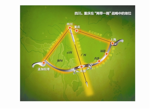 (图二)川渝经济区是21世纪海上丝绸之路的发力点(弓箭模型)