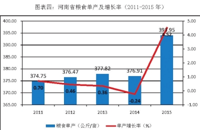 图四:河南粮食单产及增长率(2011—2015)