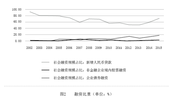首先,直接融资比重过低。这是最为表象,但是也是最值得深思的一个原因。从图2(P41)中可以看出,股票融资在社会融资中比重一直维持在低位。贷款融资比重虽然持续下降,但是依然处在高位。2013年之后,贷款融资比重由降转升,进一步提高了杠杆率。直接融资比重较低这个表象背后是我国股市长期发展停滞,这个背后隐藏着更深层次的体制原因。我国建立股市是为了促进改革,更为集中的为国有企业改革融资、提升国有企业公司治理水平,在这之后才推广为全社会的融资渠道。因此,我国股市天生就存在一些缺陷,这些缺陷长期未能进行根本性的解决。股市的各种改革更多是改良,只能缓解,但是不能根本解决问题,最终导致股市在反复中举步维艰,资金对股市只能敬而远之。出于投资需求,资金就要找到新的投资渠道。此时,因为监管部门的竞争,债券发行条件大幅度简化,刺激了债市供给。资金需求和债市供给相结合,促进了债市的繁荣。债务融资繁荣,股权投资不振进一步导致了杠杆率上升。