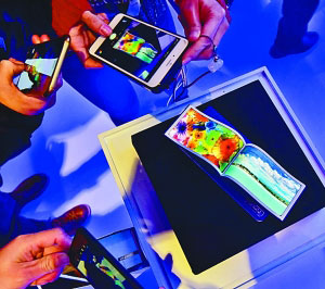 2017年12月2日,第四届世界互联网大会·互联网之光博览会上,中国制造的柔性显示屏吸引了众多目光。李剑铭摄 光明图片/视觉中国