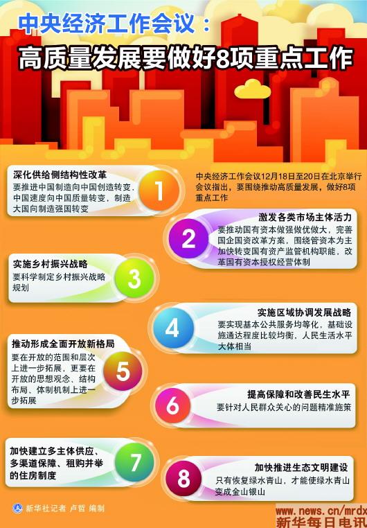 经济发展新时代,如何推动高质量发展?会议作出具体部署,提出8项重点任务——