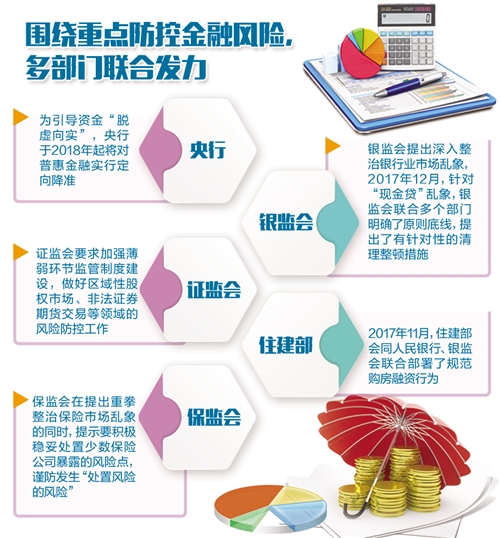 中央经济工作会议指出,打好防范化解重大风险攻坚战,重点是防控金融风险,要服务于供给侧结构性改革这条主线,促进形成金融和实体经济、金融和房地产、金融体系内部的良性循环,做好重点领域风险防范和处置,坚决打击违法违规金融活动,加强薄弱环节监管制度建设。