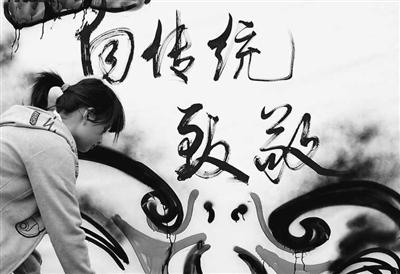 江苏南通市民参加“翰墨飘香”活动,向传统文化致敬。人民图片