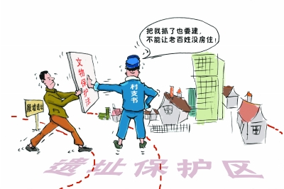 一边是急需保护的安阳殷墟世界文化遗产,禁止私搭乱建;另一边是遗址保护范围内的村民觉得殷墟没有观赏性和旅游价值,带不来经济效益,为了生存空间,急需建房。近日,河南安阳殷墟核心地带14个村庄的“农民别墅群”已呈蔓延之势,“砍掉头也要建房”的决心使殷墟正遭受有史以来最大规模的破坏。